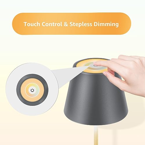 Lampada da Tavolo Ricaricabile, Lampada da Tavolo Senza Fili 2700K-6000K, Portatile Lampada da Scrivania, Touch Dimmerabile Luce da Tavolo Senza Fili er Campeggio, Bar Ristoranti e Locali (B-Grigio)