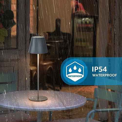 Classe di Protezione IP54:La lampada da tavolo senza fili con classe di protezione IP44 (a prova di schizzi), può essere completamente utilizzata anche sotto la pioggia, quindi questa luce è perfetta per uso interno ed esterno. È facile da trasportare e può essere portato in qualsiasi angolo della sala da pranzo, soggiorno, camera da letto e studio, e fornisce anche un'illuminazione confortevole per riunioni in giardino, campeggio all'aperto, feste in spiaggia.
