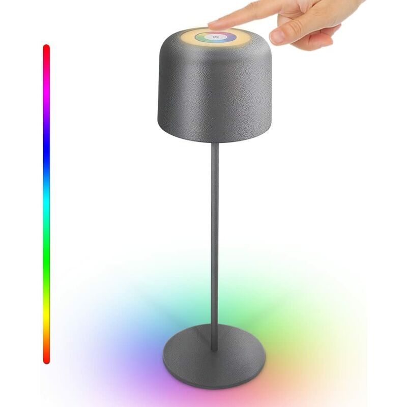 USO INTERNO ED ESTERNO - La lampada da tavolo a batteria LED RGB dimmerabile per giardino, balcone, patio e soggiorno. Grazie alla classe di protezione IP54 (a prova di spruzzi d'acqua), può resistere anche agli acquazzoni.【FUNZIONAMENTO SEMPLICE】La lampada può essere accesa e spenta e oscurata in modo intuitivo con un dito utilizzando l'interruttore tattile. Scegli automaticamente i colori dallo spettro rosso-verde-blu o scegli semplicemente il tuo colore preferito e mantienilo acceso toccando la luce.【RICARICABILE】Tasto lungo per regolare la luminosità della luce. La lampada da tavolo può essere facilmente caricata con l'alimentatore USB incluso. Si illumina in modalità wireless per 9 ore a piena luminosità e fino a 24 ore in modalità dimmer.【AREA DI APPLICAZIONE】La lampada da comodino è molto adatta per un'atmosfera e una decorazione di fondo rilassate ed è adatta per camere da letto, uffici, soggiorni e aree esterne.【LISTA DI IMBALLAGGIO E MIGLIORI REGALI】1*Lampada da tavolo