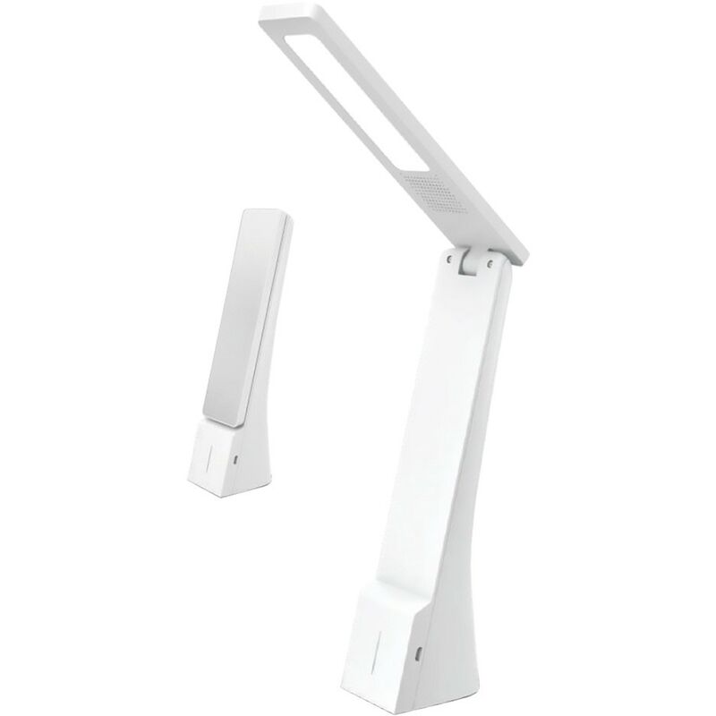 Corpo in abs ed alluminio. Accensione e spegnimento tramite sfioramento alla base della lampada, possibilità di selezione 3 livelli di intensità luminosa. Tramite il tasto a sfioramento posto alla base, è possibile accenderla e spegnerla, ed in sequenza selezionare i 3 livelli di intensità. Tempo di ricarica 4-5 ore tramite cavo usb, durata con lampada accesa da 6 a 48 ore. Dimmerabile, flusso luminoso 550 lm, rapporto di 138 lm/w, fascio luminoso 120°. Dimensioni: cm 20x5x26,3. Certificazione CE, EMC, ROHS.