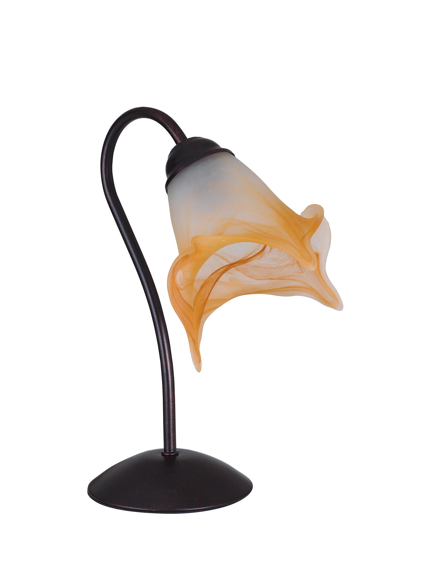 Struttura in metallo con paralume in vetro colore ruggine, stile Rustico