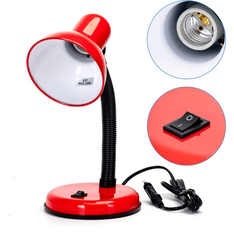Lampada da tavolo scrivania in metallo E27 pieghevole Digitare:Lampadina non inclusa Categoria:Lampada da scrivania Colore del prodotto: Rossa Voltaggio: 220-240V~ Potenza: Max.60W Intensità corrente: 100mA Frequenza: 50/60Hz Adattatore: E27 Dimensioni: D14*H31 cm Lunghezza del cavo: 1.5m Ambiente: Interno Vita utile: 20000h Materiali principali:PP e metallo
