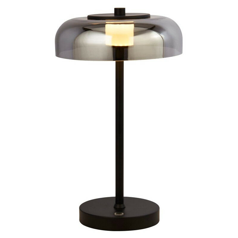 Searchlight Frisbee 1 Luce Led Lampada da Tavolo, Nero Opaco Con Vetro Fumè | Finitura: fumo, nero opaco | Materiale: vetro | Materiale: acciaio | Classificazione IP: IP20 | Altezza massima (cm): 40 | Larghezza (cm): 23 | Lunghezza (cm): 23 | Finitura paralume: fumo | Diametro paralume (cm): 23 | Numero di luci: 1 | Tipo di lampada: LED INTEGRATO | Dimmerabile: Sì - 3 Stage Touch | Potenza (max): 10W | Lampadina inclusa: No | Kelvin: 2700K (bianco molto caldo) | Lumen: 155