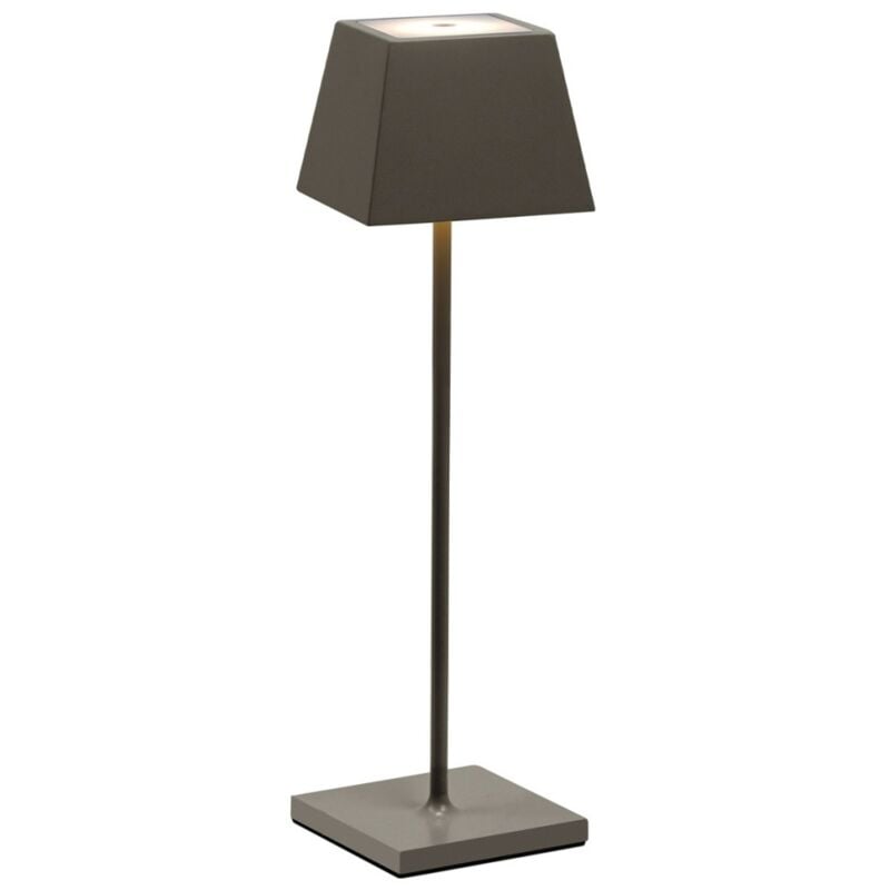 Lampada a led da tavolo Siesta tortora ricaricabile e dimmerabile con batteria incorporata da 2,2watt. Siesta è una lampada a led da tavolo che ha un flusso luminoso di 200 lumen La batteria della Siesta ha una durata garantita di 9 ore alla massima potenza. Batteria ricaricabile tramite ingresso USB posto sulla parte inferiore della testa della lampada, cavetto USB incluso nella confezione, si ricarica in 5/7 ore. La lampada a led da tavolo Siesta è in pressofusione di alluminio con corpo verniciato tortora, diffusore satinato in policarbonato, dove, sulla sommità del diffusore, è presente il pulsante touch di accensione della lampada, per la dimmerazione bisogna fare una leggera pressione sul touch fino alla luminosità desiderata. Siesta è una lampada di design ideale da utilizzare nei dehors, gazebo, bar, ristorante e aree relax, si utilizza molto anche nelle camere da letto, nei salotti e negli studi professionali. Lampada a led da tavolo di design. Siesta è una lampada a led da