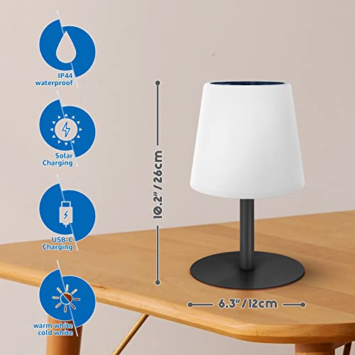 Lampada da tavolo solare a LED per esterni, bianco caldo/giallo caldo, lampada da tavolo per esterni, senza fili, 2 in 1, carica solare e ricarica USB, dimmerabile, con telecomando, hotel, (nero)