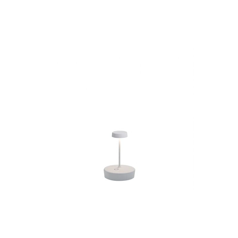 Lampada a led da tavolo Swap mini pro bianco ricaricabile e dimmerabile con batteria incorporata da 2 watt. La batteria della Swap mini pro ha una durata garantita di 13 ore alla massima potenza. Batteria ricaricabile tramite base di contatto inclusa nella confezione. La lampada a led da tavolo Swap mini pro è in alluminio con corpo verniciato bianco e diffusore in policarbonato. La lampada da tavolo a Led è dotata di pulsante touch per la sua accensione posto sulla base. Swap mini pro è una lampada di design ideale da utilizzare nei dehors, gazebo, bar, ristorante e aree relax, si utilizza molto anche nelle camere da letto, nei salotti e negli studi professionali. Lampada a led da tavolo di design. Swap mini pro ha un grado di protezione IP65 che la rende adatta sia all'uso interno che esterno. La colorazione della luce di Swap mini è 2700K, flusso luminoso di 267 lm . Swap mini pro è una lampada a led da tavolo con marca Zafferano.