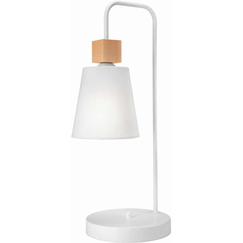 Dettagli del prodotto Materiale: Metallo, tessuto, legno Dimensioni: altezza: 520 mm Attacco: 1x E27 fino a 60W Classe di protezione dagli spruzzi: IP20 Colore: Bianco, legno