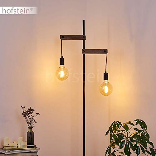 Lampada da terra Aarhus, lampada regolabile in metallo/legno/corda di canapa in nero/natura, 2 luci, E27, altezza 150 cm, design retro/vintage con interruttore a pedale sul cavo, senza lampadina/e