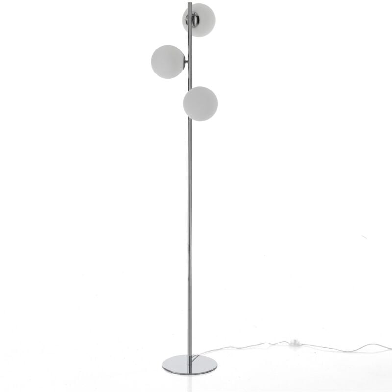 Lampada da terra ROEBUCK - struttura in acciaio Cromato - Nr.3 paralumi direzionabili realizzati in vetro bianco Ø.15 cm. - dimensione lampada cm. Ø.30 H.160 - predisposto per nr.3 lampadina G9 max 5W (non in dotazione) - base in acciaio cromato Ø.25