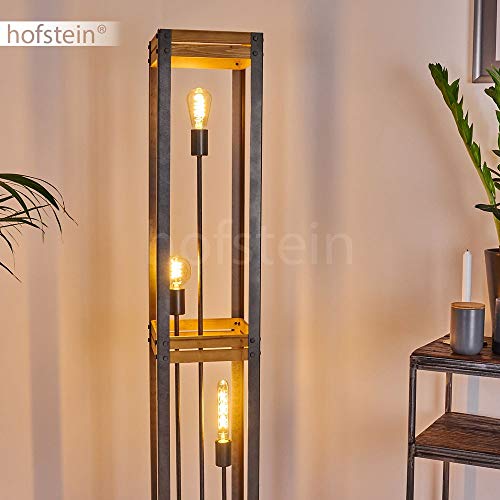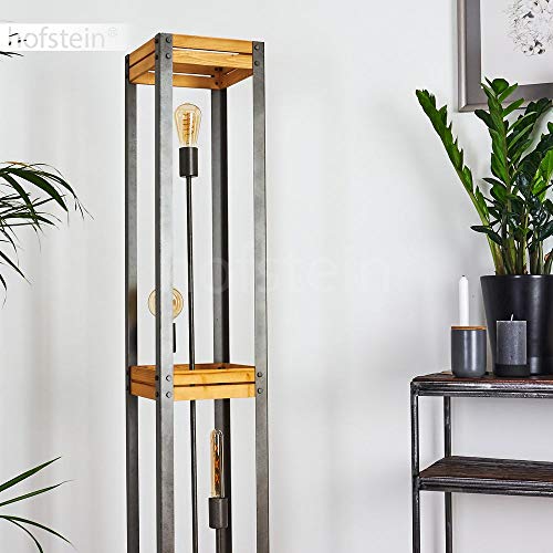 Lampada da terra Apia, lampada da terra in metallo/legno in argento/marrone, 3 luci, 3 x attacco E27, lampada vintage con interruttore a pedale sul cavo, senza lampadina/e