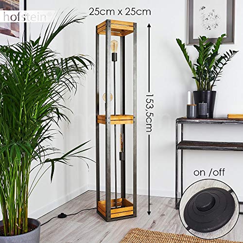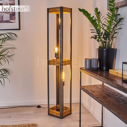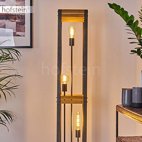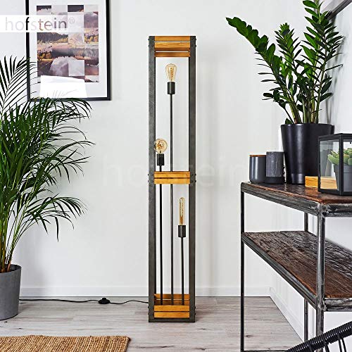 Lampada da terra vintage: lampada da terra a 3 luci, in metallo e legno. Il paralume insolito è costituito da una struttura in metallo con elementi in legno, in cui sono integrate tre portalampade per lampadine. Ideale come lampada da terra in salotto.