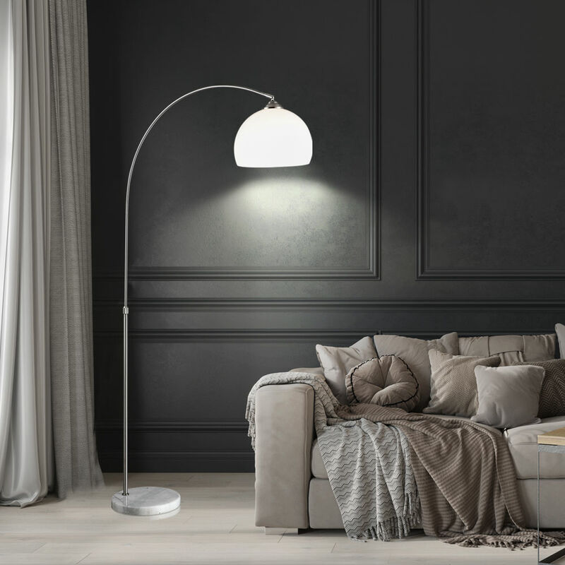 Descrizione Lampada da terra dal look moderno con base in marmo. Questa lampada porta stile nella tua zona giorno. La forma moderna con un lungo stelo ricurvo, che termina con il paralume in plastica bianca, si adatta perfettamente a quasi tutti gli stili abitativi. Um Per variare la posizione di illuminazione, la lampada ha una funzione telescopica con la quale l'altezza e la posizione del paralume può essere facilmente modificata. Un'energia di alta qualità -La sorgente luminosa a LED a risparmio energetico è inclusa nella consegna. Dettagli lampada • Tipo di lampada: lampada da terra• materiale: nichel opaco• base in marmo • materiale paralume: plastica, bianco• Funzione telescopio • regolabile in altezza • Switch • Diametro base in marmo: 29 cm • Altezza base in marmo: 3,5 cm • Diametro paralume: 26 cm• lunghezza x altezza in cm: 92x 141-196 • cornice: 1x E27 • lumin media inclusa: si • potenza lampada: 1x 4 watt • flusso luminoso: 320 lumen • colore luce: bianco caldo