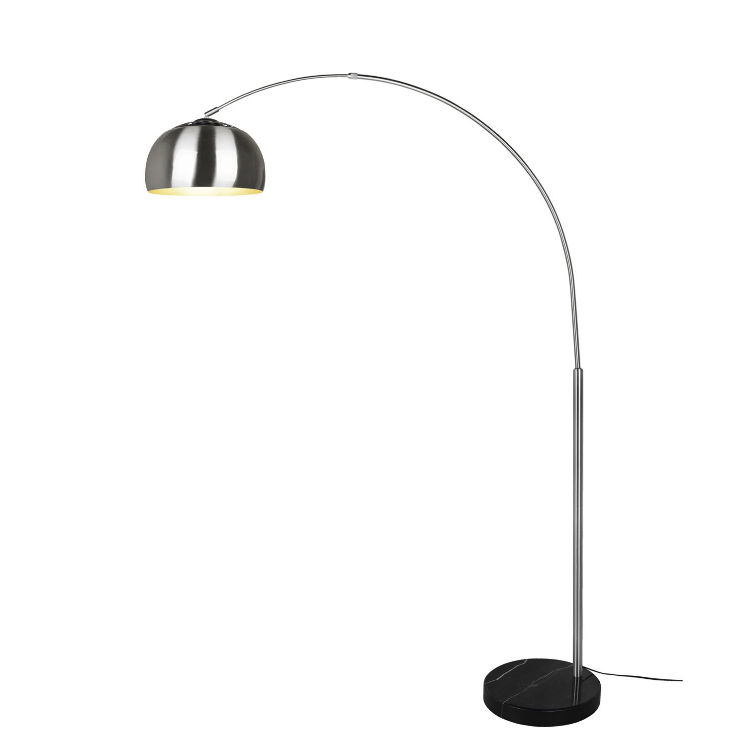 L'elegante lampada ad arco Argentina può essere integrata con stile in ogni ambiente grazie al suo design senza tempo. Che sia come lampada da lettura accanto alla poltrona o come fonte di luce alternativa accanto al divano, il dispositivo luminoso fornisce una piacevole luce creando un'atmosfera accogliente. Può essere comodamente accesa e spenta utilizzando un interruttore a pedale. La struttura e il paralume della luce sono rifiniti in un uniforme nichel opaco e sono completati con una base di marmo nero. L'uso di sorgenti luminose a LED è consigliato per l'illuminazione a risparmio energetico. Queste sono un'alternativa ideale alle tradizionali fonti di luce alogene e offrono alta qualità della luce e risparmi energetici fino all'80%. Dimensioni: 38x200x172 cm.