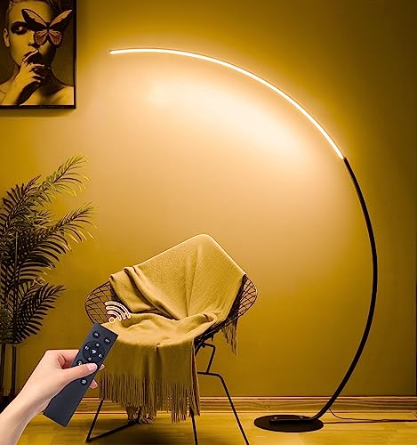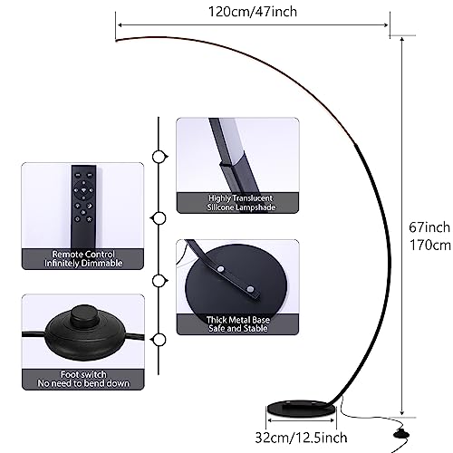 Lampada da Terra ad Arco Salotto, 25W LED Piantana Lampada da Terra Dimmerabile Moderna, Lampade da Terra con Telecomando, 3000K-6000K, Lampada da lettura per Soggiorno, Camera da Letto, Ufficio, Nero
