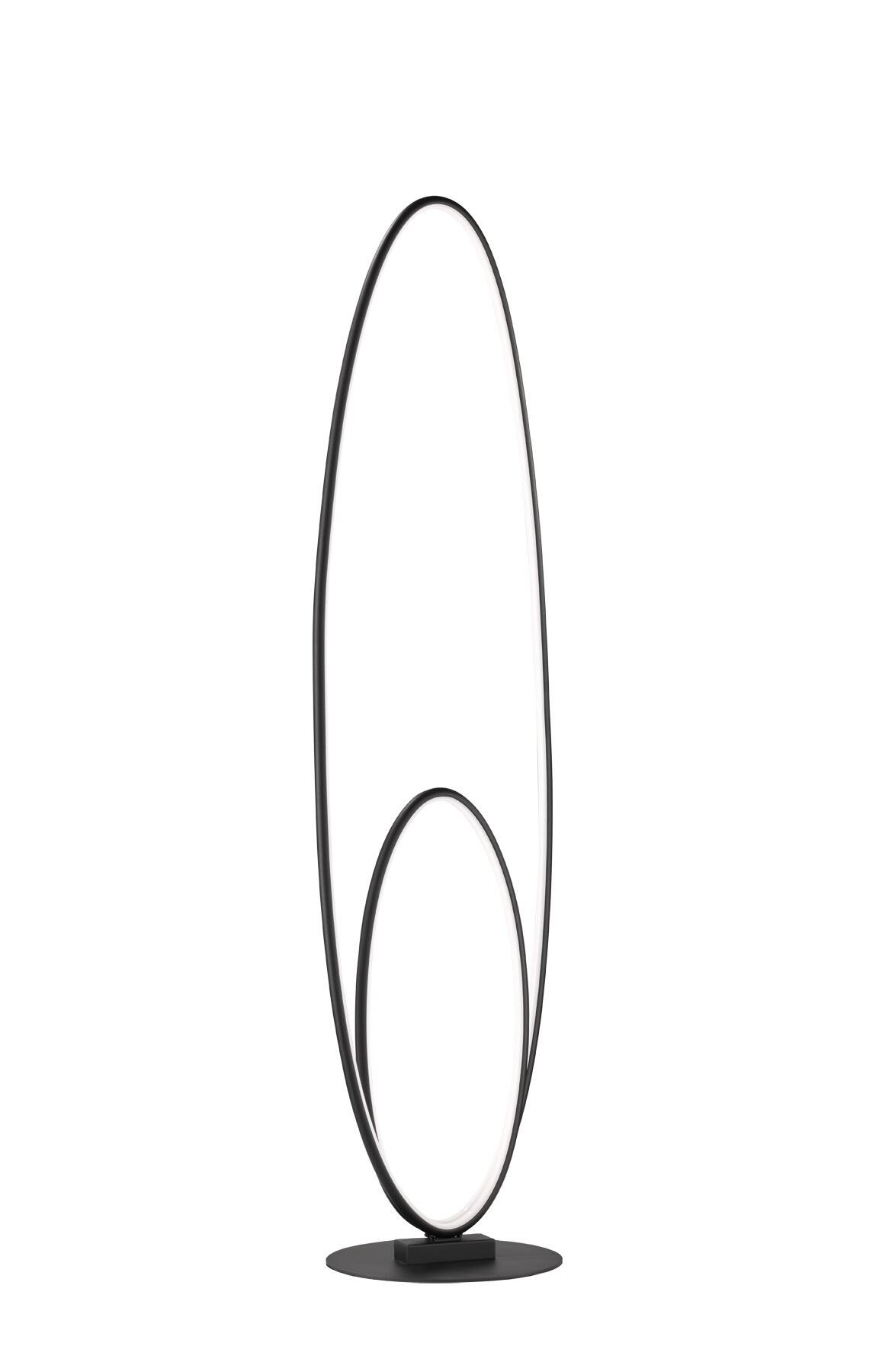 Piantana LED doppia ellisse metallo nero opaco con possibilità variazione in tensità della luce mezzo in terruttore a pedale. dimmerabilità mediante interruttore a pedale