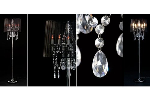 Lampada da terra in stile barocco con paralume in tessuto e cristallo deco