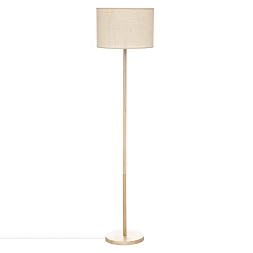 Atmosphera - Lampada da terra in legno di pino e paralume beige naturale intrecciato H 149.5 cm