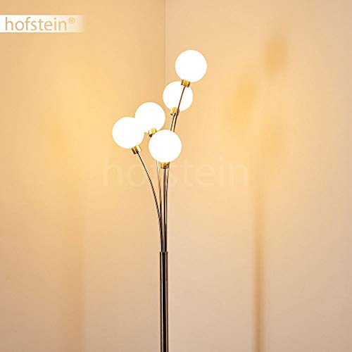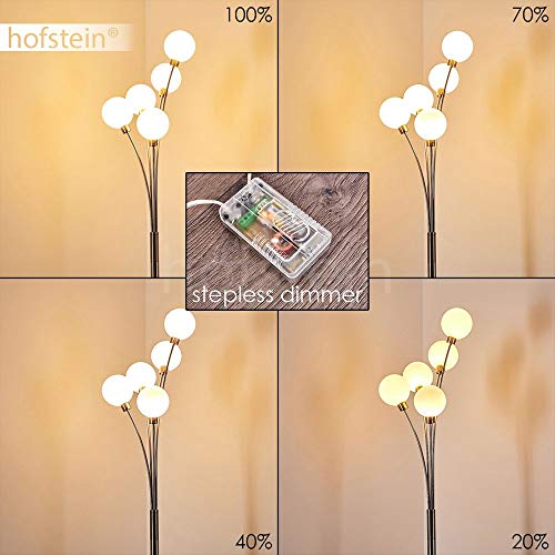Lampada da terra Bernado, dimmerabile all'infinito, in acciaio spazzolato, 5 luci, globi in vetro, G9, lampada ad arco per soggiorno/camera da letto, interruttore a pedale sul cavo, senza lampadine