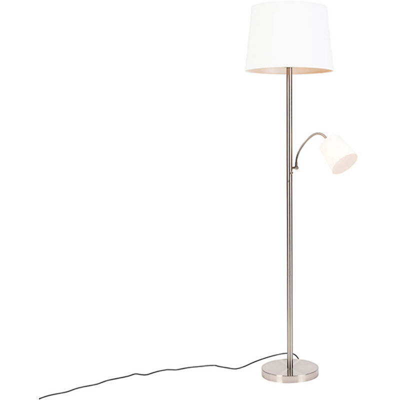 QAZQA Lampada da terra intelligente in acciaio con paralume bianco incl. WiFi A60 e E14 - Retro La lampada da terra Retro è un must-have per un interno classico. Ha una finitura bianca ed è realizzata in tessuto e acciaio. Con un massimo di 806 lumen, la lampada fornisce molta luce ed è quindi adatta per un'illuminazione funzionale. Questa lampada da terra è dotata di una lampadina E27 ed E14. Le lampadine incluse consumano 9 watt e durano in media 25.000 ore di accensione. Non dovrai più alzarti dal divano, perché Retro è anche intelligente e può essere azionata da remoto con il tuo smartphone o il tuo sistema di domotica. Retro è dotata di cavo e spina. Il cavo è lungo 240 cm. Questa lampada da terra è dimmerabile, dimmer incluso. Non potrai fare a meno di guardarla: Retro è un must-have per i tuoi interni! Portalampada: E14 . Max 1 x 9 W, 230 V Adatto a: LED Voltaggio: 220V/230V IP Classe di protezione: [IP20] A prova di polvere Funzioni extra: Regolabile: Dimmer incluso,Sì, con