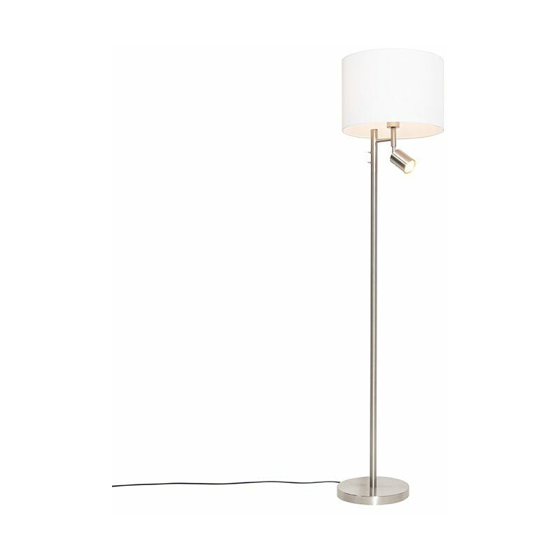 QAZQA Lampada da terra in acciaio con paralume bianco e lampada da lettura - Jelena Porta una moderna lampada da terra nella tua casa con Jelena. Questa lampada è realizzata in acciaio e tessuto ed è rifinita in bianco. La luce extra nella parte inferiore del paralume funziona perfettamente come luce di lettura. Ha un diametro di 35 cm e un'altezza di 150 cm. La base ha un diametro di 25 cm e un'altezza di 3,5 cm. Il cavo è lungo 250 cm. Le lampadine E27 e GU10 necessarie devono essere ordinate separatamente. Puoi rendere la tua casa ancora più accogliente con un dimmer esterno, perché questa lampada è dimmerabile (dimmer non incluso). Completa il tuo arredamento moderno con questa lampada da terra Jelena. Portalampada: E27 . Max 1 x 40 W, 230 V Adatto a: Incandescente, Algogene, LED,Risparmio energetico Voltaggio: 220V/230V IP Classe di protezione: [IP20] A prova di polvere Funzioni extra: Regolabile: Dimmer escluso,Sì, con cavo e spina Lampadine exclusiva Il QAZQA Lampada da terra