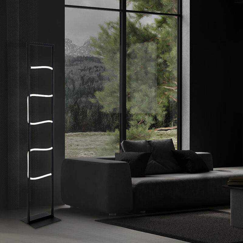 Descrizione Questa lampada da terra colpisce per il suo design moderno realizzato in metallo nero opaco e plastica opalina. La struttura rettangolare in metallo (135x25 cm) è molto stabile grazie alla piastra di base ed è attraversata da un tubo splendidamente curvo in plastica opalina. La lampada da terra fornisce 860 lumen di luce con un colore della luce suggestivo di 3000 Kelvin (bianco caldo). Il cavo lungo 180 cm è dotato anche di un interruttore con il quale è possibile accendere o spegnere facilmente la lampada da terra. La sorgente luminosa a LED è installata in modo permanente nella lampada. Lampada dettagli • Tipo di lampada: lampada da terra • Materiale: metallo, plastica, alluminio • Colore: opale, bianco, nero • Grado di protezione: IP20 • Classe di protezione: 2 • Interruttore a pedale • Lunghezza x larghezza x altezza in cm: 25 x 20 x 135,4 • Sorgente luminosa: 1x LED (installato in modo permanente) • Lampadine incluse: sì • Potenza lampada: 1x 26 watt • Flusso