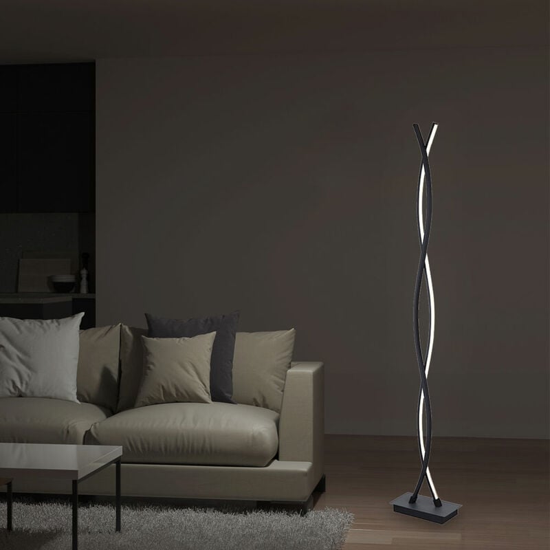 Descrizione Questa moderna lampada da terra attira l'attenzione con il suo bellissimo design e sta benissimo nei tuoi interni. Due bracci curvi neri opachi corrono l'uno nell'altro in una spirale formosa e formano così un'altezza di quasi 1,5 m. In ogni asta è presente una luce LED, che fornisce alla stanza una piacevole luce bianca calda (3000 Kelvin) e può essere accesa con l'interruttore a pedale ON/OFF. Una lampadina a LED e un interruttore a pedale per il controllo della luce bianca e notturna sono installati in modo permanente nella lampada. Particolare lampada • Tipo di lampada: lampada da terra • Materiale: metallo • Colore: grafite nero • Grado di protezione: IP20 • Interruttore a pedale • Lunghezza x larghezza x altezza in cm: 25x13x143 • Illuminante: 1x LED • Lampadina inclusa: sì • Potenza della lampada: 36 watt • Temperatura colore: 3000K • Flusso luminoso: 1x 1062 lumen • Alimentazione: 230V, 50Hz Dettagli lampadine • Attacco: LED • Flusso luminoso: 1062 lumen • Consumo