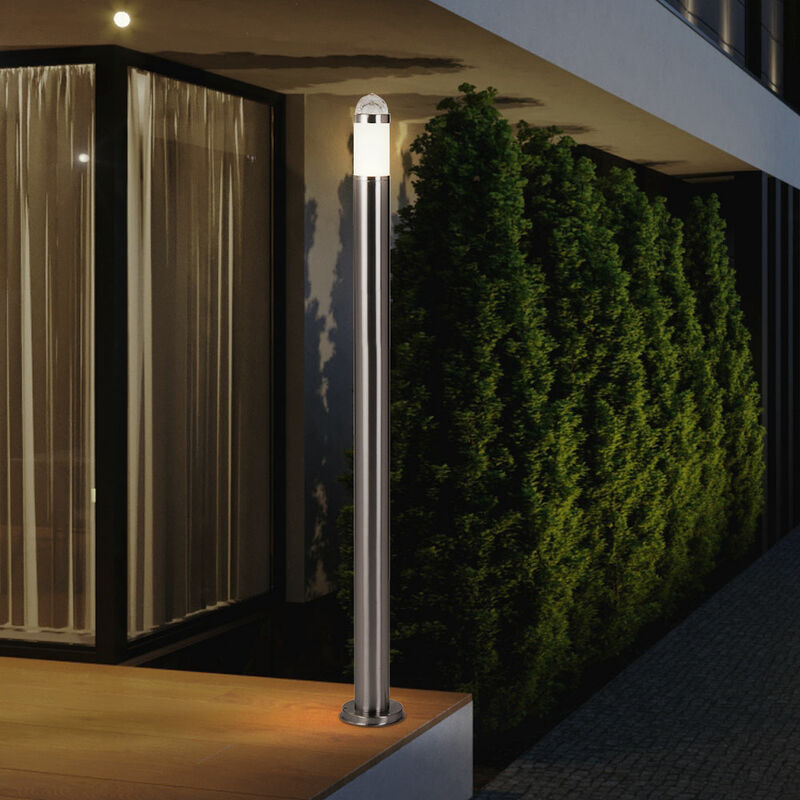 Descrizione Moderna lampada da esterno realizzata in acciaio inossidabile. Ottima fattura, aspetto elegante e finitura nobile: queste sono le caratteristiche di questa lampada di design. La lampada è progettata secondo la classe di protezione IP44 ed è anch'essa realizzata in acciaio inossidabile e plastica robusta. Questo lo rende resistente alla polvere e agli spruzzi d'acqua e quindi particolarmente adatto per l'uso all'aperto. La lampadina non è inclusa nella fornitura. Particolare lampada • Tipo di lampada: lampada da terra • Materiale: acciaio inossidabile, vetro • D'argento • Grado di protezione: IP44 • Decorazione in cristallo • Diametro x altezza in cm: 11,8 x 110 • Peso: 1,28 kg • Presa: 1x GU10 • Lampadina inclusa: No • Potenza della lampada: 1x massimo 7 watt • Tensione: 230V, 50Hz