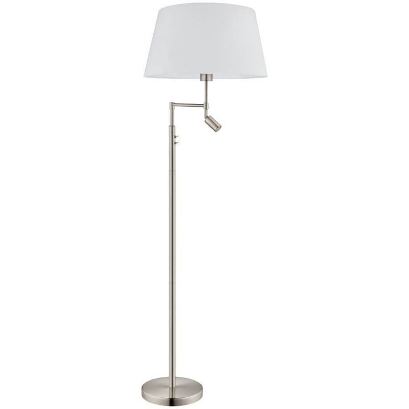 Descrizione Questa lampada da terra con braccio da lettura orientabile è flessibile ed efficiente, intramontabile ed elegante. L'elegante superficie argentata e il paralume in tessuto bianco si adattano bene a qualsiasi stile di interno. Il braccio di lettura porta la luce nel punto e può essere orientato in qualsiasi momento secondo necessità grazie alla orientabilità della testa. Le due sorgenti luminose possono essere commutate separatamente. Con un'altezza di 153 cm e un diametro di 50 cm, questa lampada da terra è per il soggiorno moderno. Le lampadine sono incluse nella consegna. Lampada dettagli • Tipo di lampada: lampada da terra • Materiale: metallo • Paralume in tessuto • Argento • Grado di protezione: IP20 • Classe di protezione: 2 • braccio di lettura orientabile • Le sorgenti luminose possono essere commutate separatamente • Lunghezza x larghezza x altezza in cm: 50x50x153 • Lampadina del proiettore a soffitto: 1x E27 LED • Lampadine incluse: sì (installate in modo