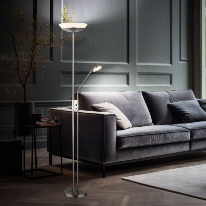 Descrizione Uno splendido illuminante che donerà alla tua stanza un'atmosfera calda. Il faretto è realizzato in metallo nichel opaco e vetro opalino che emette una luce morbida. La plastica ha una finitura satinata e completa l'aspetto elegante. Con un diametro di 29 cm e un'altezza di 180 cm, questo faretto da soffitto attira davvero l'attenzione in ogni stanza. Può essere ruotato e orientato e dispone di un braccio flexo. La luce da lettura ha un diametro di 10,5 cm. Si prega di notare che il faretto viene fornito esclusivamente con 1x LED 18,5W 230V, che ha un'intensità luminosa di 1370lm e una temperatura di colore di 3000K. La luce da lettura è alimentata da un LED da 4,5W 230V, che ha un'intensità luminosa di 320lm e una temperatura di colore di 3000K. Le lampadine LED sono comprese nella fornitura. Lampada dettagli • Tipo di lampada: lampada da terra • Materiale: vetro, metallo, plastica • Colore: nichel, opale, satinato • Grado di protezione: IP20 • Classe di protezione: 2