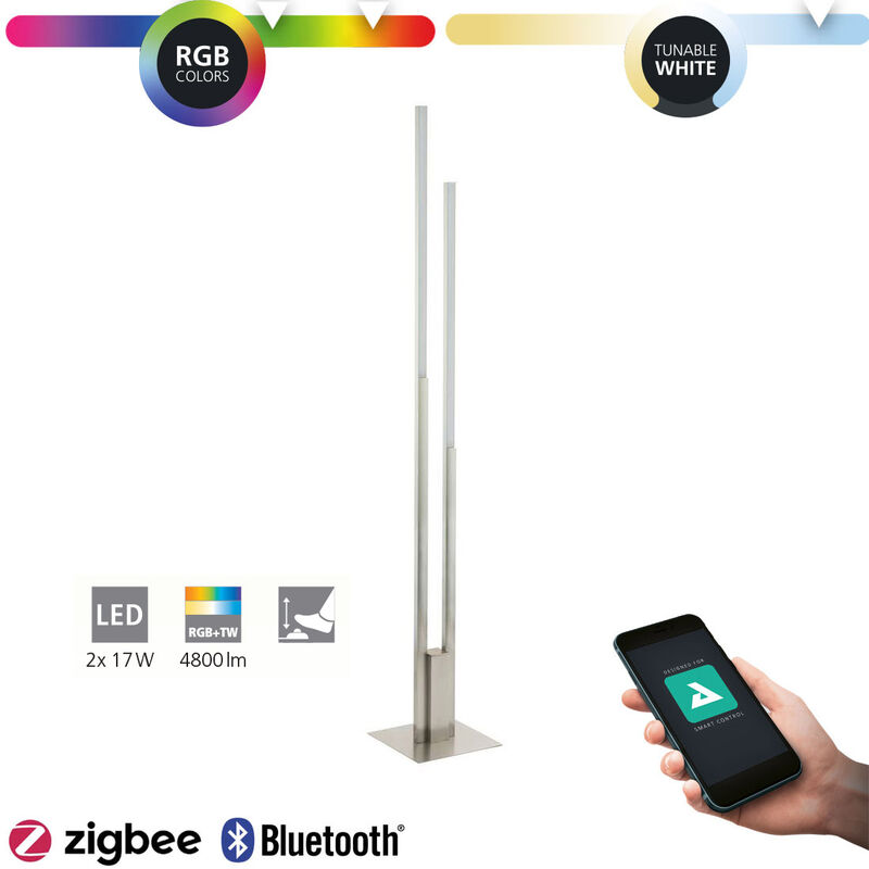 Lampada da terra a LED Fraioli-Z Nickel-matte Bianco H: 175.5 cm con interruttore a piedi Dimmable 2700-6500K con funzione Connect-z & Nbsp;