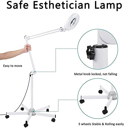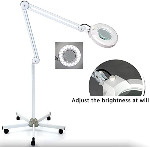 Lampada da terra con ingrandimento di bellezza 5X LED con base a 5 ruote, lente d'ingrandimento dimmerabile e regolabile per lettura, artigianato e attività professionali