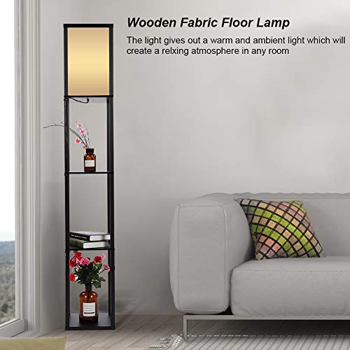 Lampada da Terra in Legno, Lampada a Stelo 1.6M, Lampada da Terra e Comodino, Lampada da Terra con 3 Ripiani per Camera da Letto e Sala di Soggiorno, 26 x 26 x 160 cm, Nero