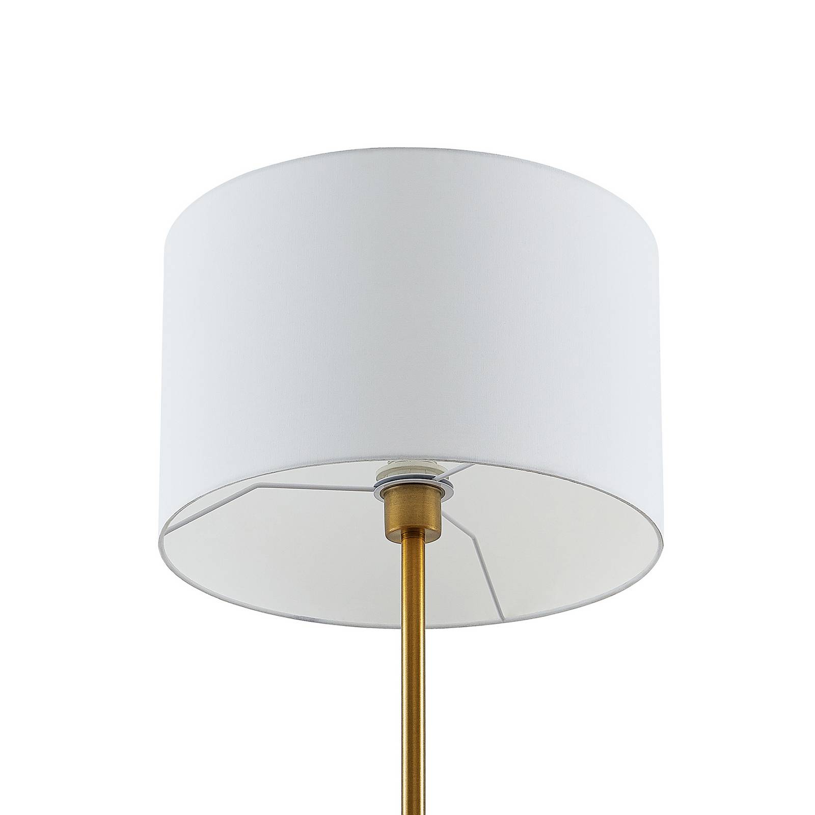 Lampada da terra Aovan in bronzo con stazione di ricarica USB integrata Aovan è una lampada da terra moderna che colpisce per il suo bel design e si dimostra funzionale. È realizzata in ferro e ha due sorgenti luminose che fungono da illuminazione ambientale e da lampada da lettura. La fonte di luce principale può essere dotata di una lampadina E27 e la lampada da lettura di una lampadina E14. Questa lampada è inoltre dotata di un pratico ripiano in legno e di una connessione USB integrata nel supporto. Ciò significa che ALS può essere utilizzato non solo come oggetto di illuminazione, ma anche come stazione di ricarica per i dispositivi mobili nella vita quotidiana. La combinazione di colori bronzo e bianco crema è elegante e accattivante.
