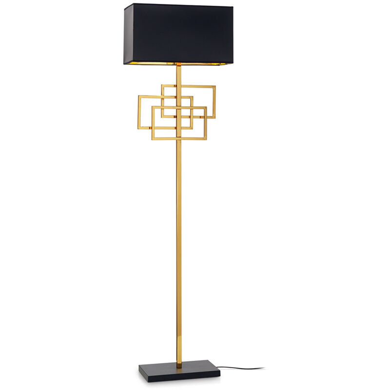 Collezione Luxury LUSSO ED ELEGANZA Piantana a 1 luce con montatura in metallo con finitura ottone. Base nera opaca. Paralume in pvc con bordi in tessuto.