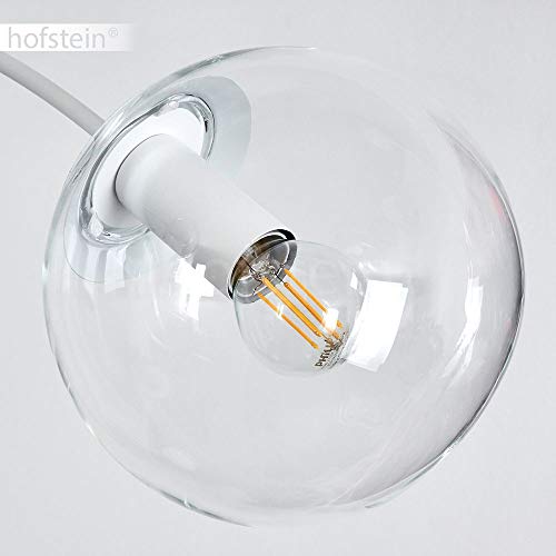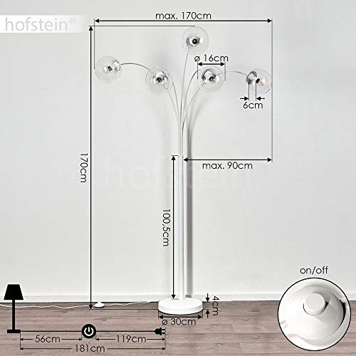 Lampada da terra Mesas, lampada da terra in metallo in bianco, 5 luci con globo in vetro reale, 5 x E14, lampada da terra moderna con interruttore a pedale,senza lampadina/e
