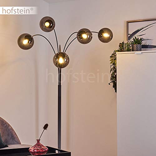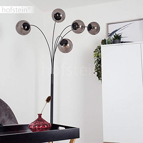 Lampada da terra Mesas, lampada da terra in metallo in nero, 5 luci con globi in vetro fumé, 5 x E14, lampada da terra moderna con interruttore a pedale, senza lampadina/e