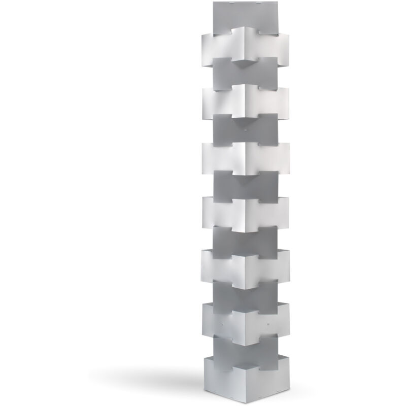 Collezione Building LAMPADE AD INCASTRO Piantana moderna a 1 luce realizzata in polilux silver, dotata di cavo trasparente lungo 150 cm e base in metallo bianco. Building è una lampada moderna e colorata a luce diffusa. Versatile e dinamica, perfetta per ambienti contemporanei e moderni. Disponibile in diverse finiture di colore, nasce dal ricordo dei viaggi di Enea Ferrari nei quale ha osservato i più grandi grattacieli, cogliendone l'essenza per dar vita ad una lampada versatile e customizzabile. La struttura ad incastro, formata da elementi sovrapposti, permette una personalizzazione completa.