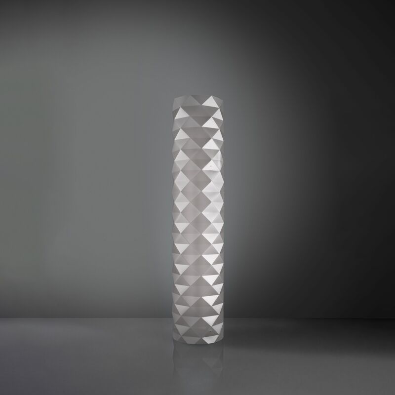 Collezione Prisma ISPIRATA ALL' ARTE E AI MOSAICI Piantana moderna a 3 luci realizzata in polilux silver, dotata di cavo trasparente regolabile lungo 150 cm e base in metallo. Impreziosita da sfaccettature piramidali, trae ispirazione dall'arte, dai mosaici pavimentali geometrici, le forme triangolari, incise della Prisma, giocano con il concetto di luci e ombre per ricreare l'effetto a mosaico. Disponibile in diverse misure e finiture di colore, con un forte impatto visivo donerà eleganza e raffinatezza ad ogni ambiente moderno e contemporaneo.