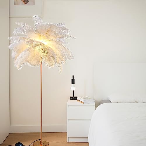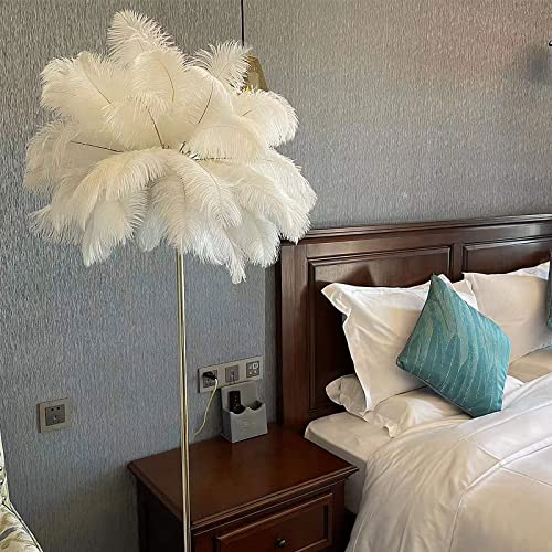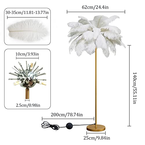Lampada da terra moderna in piume per camera da letto, lampada da terra H 160 cm per soggiorno, lampada da terra in piume di struzzo naturale, lampada da terra in piume bianche con sorgenti luminose