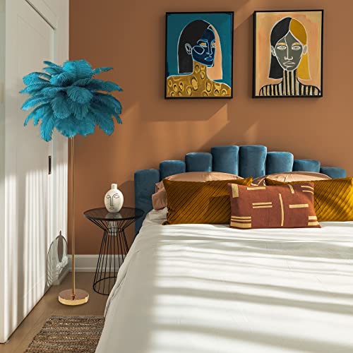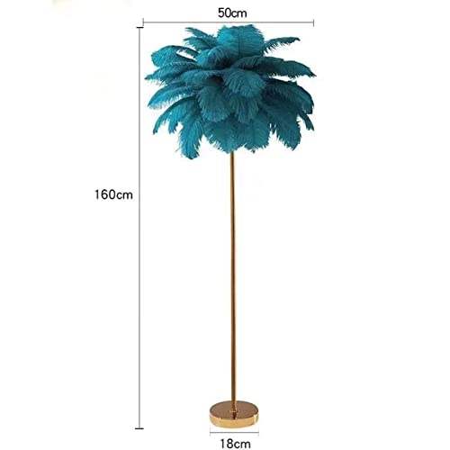Lampada da Terra in Piume di Struzzo Naturale, Lampada da Terra Semplice e Moderna per Camera da Letto, Lampada da Camera da Letto a LED, Blu, 1.6 m, Corpo Lampada Dorato