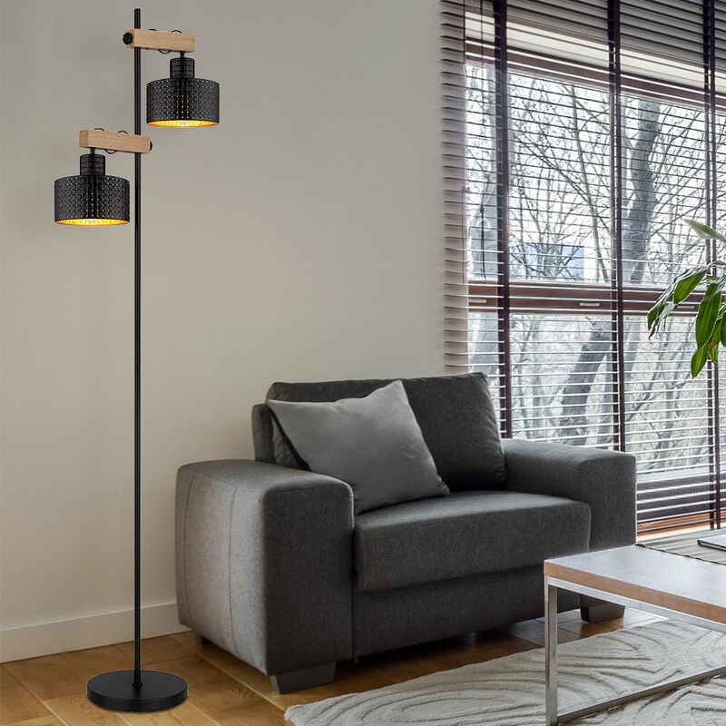 Descrizione Questa moderna lampada da terra colpisce per la sua fantastica combinazione di colori in oro, nero e effetto legno. Da una base rotonda sporge un'asta di metallo lunga 168 cm con due barre in MDF regolabili in altezza in un bellissimo effetto legno, ciascuna con una presa E27. Questo è racchiuso in uno schermo elegante e decorativo in nero e oro e può essere azionato tramite l'interruttore ON/OFF. La presa E27 consente di determinare autonomamente il colore della luce e la luminosità fino a una potenza massima di 40 watt. Le lampadine non sono incluse nella fornitura. Particolare lampada • Tipo di lampada: lampada da terra • Materiale: metallo, MDF • Colore: oro nero, effetto legno • Cavo in PVC nero • Interruttore basculante su cavo • Paralumi regolabili in altezza • Grado di protezione: IP20 • Classe di protezione: 2 • Lunghezza cavo in cm: 180 • Lunghezza x larghezza x altezza in cm: 44 x 25 x 168 • Prese: 2x E27 • Lampadina inclusa: No • Potenza della lampada: massimo