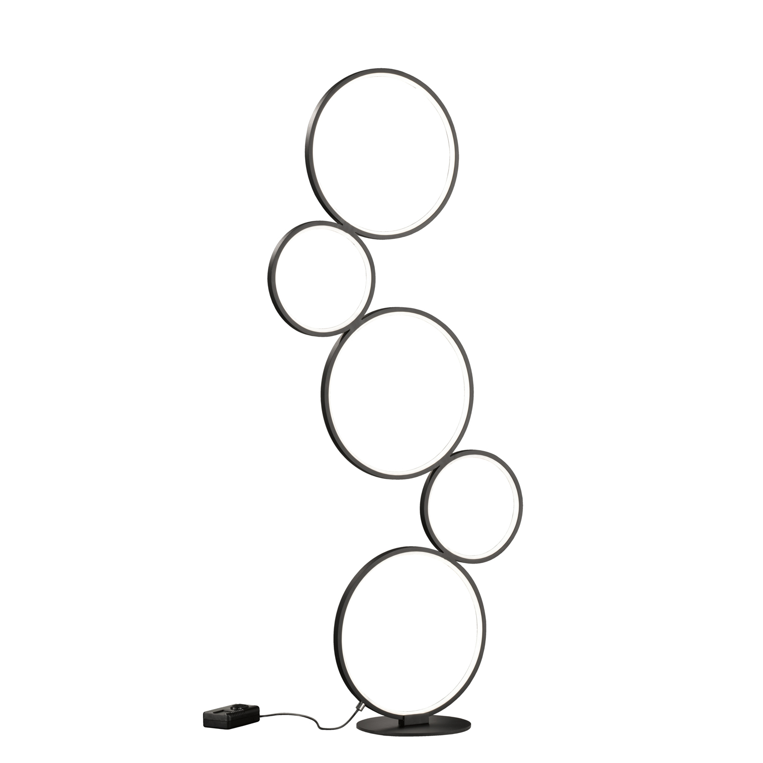 Con i suoi cinque anelli di diametro diverso, la lampada da terra Rondo è un vero e elemento di design. La lampada è dotata di un dimmer integrato che si controlla tramite l'interruttore del cavo. Ciò consente di controllare in modo flessibile la luminosità dei LED installati all'interno di ciascun cerchio. In più, la moderna tecnologia LED, che si distingue per l'elevata qualità della luce, permette di risparmiare fino all'80% dei costi energetici. Le sorgenti luminose a LED offrono inoltre una lunga durata e una bassa generazione di calore, rispettando l'ambiente. Dimensioni 47x115x20 cm.