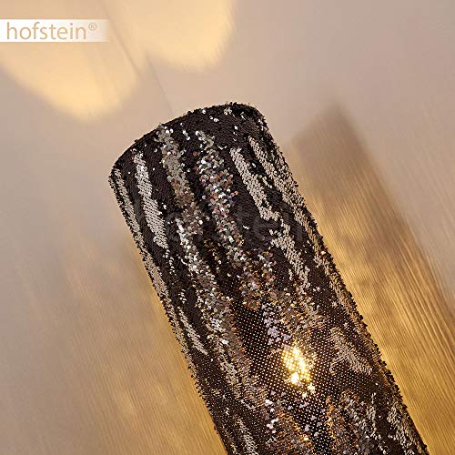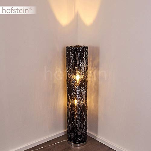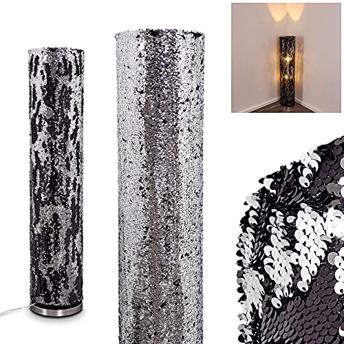 Lampada da terra Sjaelland in paillettes in nero-argento, lampada da terra a 2 luci con interruttore a pedale, 2 x E27, le paillettes del paralume possono essere ruotate a piacere, senza lampadina/e