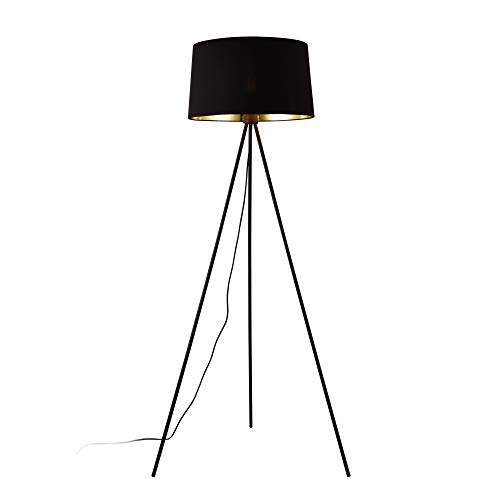 Lux.pro Lampada da Terra in Stile Treppiedi con Base in Metallo e Paralume in Tessuto E27 60W Piantana a Terra - Nero