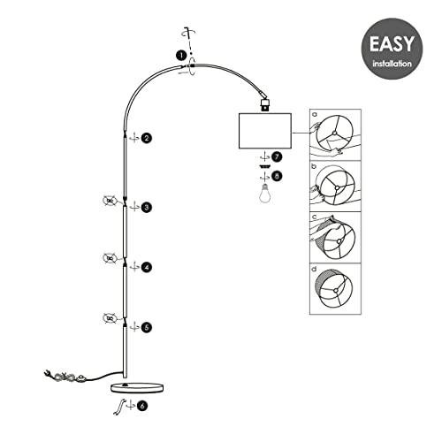 VERSATILE: La lampada da terra ha un attacco E27 standardizzato ed è adatta a qualsiasi sorgente luminosa con attacco E27 (classe energetica da A++ a E, massimo 10 W per presa). Puoi determinare tu stesso il colore, la potenza e l'attenuazione della lampada scegliendo la sorgente luminosa. La lampadina a filamento LED mostrata non è inclusa nella fornitura ed è disponibile separatamente sotto "B08244YBTW".