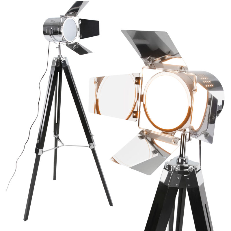 Con un design che ricorda un riflettore del set cinematografico o di studio fotografico, questa lampada da terra dona un tocco elegante e unico al vostro spazio abitativo. Il pratico treppiede in legno è regolabile in altezza. Il paralume è dotato di quattro ali di metallo cromato e si può ruotare di 360 gradi, in modo da poter impostare l'illuminazione nel modo desiderato. La combinazione di legno caldo e metallo freddo rende questa lampada da terra un elemento di design decorativo per la vostra casa. Treppiede in legno regolabile in altezza Ricorda le attrezzature fotografiche o cinematografiche Paralume in robusto metallo, ruota di 360 gradi Colore: nero opaco
