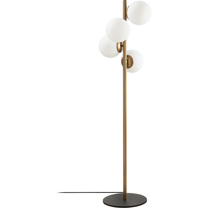 al contrario, se sono di colori scuri, la assorbiranno. Per un arredamento armonioso, abbina questa lampada da terra con il lampadario della stessa collezione. Caratteristiche Colore: Oro Materiale: Metallo Indice di protezione: IP20 Numero di boccole: 4 Gamma: Made for design Sfere di vetro Funziona con 4 lampadine E27 di 40W max, non fornite Dimensioni Lunghezza: 32 cm Altezza: 130 cm Profondità: 32 cm: Diametro delle sfere: 15 cm: Lunghezza del