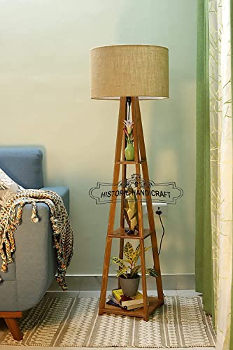 Lampada da terra vintage in legno reale con treppiede da terra nautica marittima a 3 livelli treppiede lampada da terra decorazione per la casa lampada natale regali (senza ombra)
