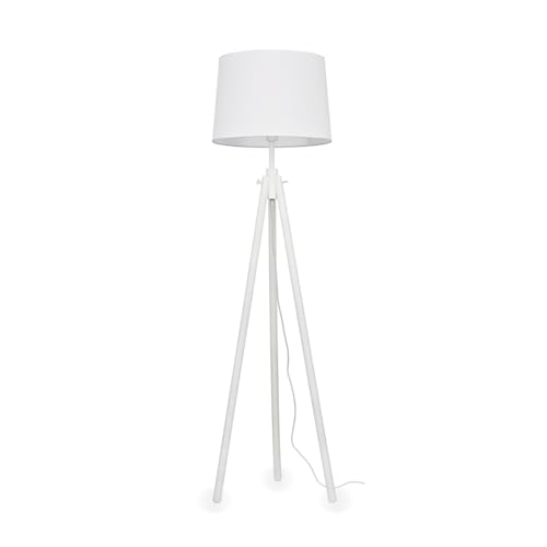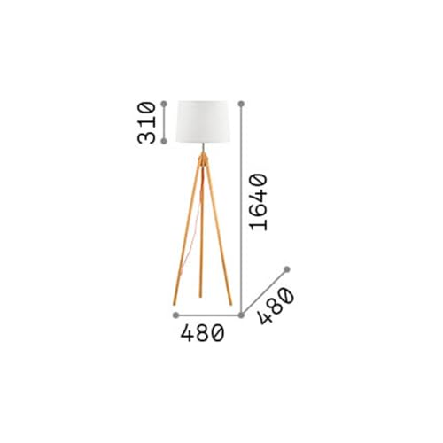 LAMPADA DA TERRA YORK PT1 BIANCO 1LUCE Base in legno naturale con dettagli in metallo. Paralume in lamina di pvc rivestito in tessuto bianco. Cavo esterno in tessuto