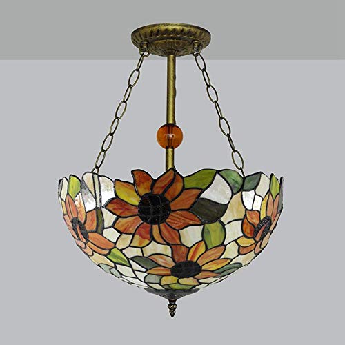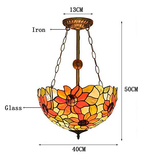 Lampada Tiffany 16 pollici Lampada a sospensione a soffitto Stile mediterraneo Vintage Rurale Vetro colorato Lampadario per Piccolo soggiorno Camera da letto Sala da pranzo Bar Loft Foyer Balcone